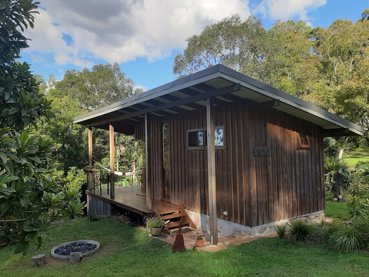 "HilAda" is a modern, minimalist timber cabin with bespoke furniture. It's situated on our working family farm. You'll have the entire cabin to yourself with your own entrance. The cabin sits amongst a fruit orchard and veggie garden. It's surrounding ornamental gardens attract many birds. The cabin is about 40m away from the main house. Wake up to the beautiful morning light and embrace the day with great views. You'll see us go about our everyday life business. Feel free to engage!