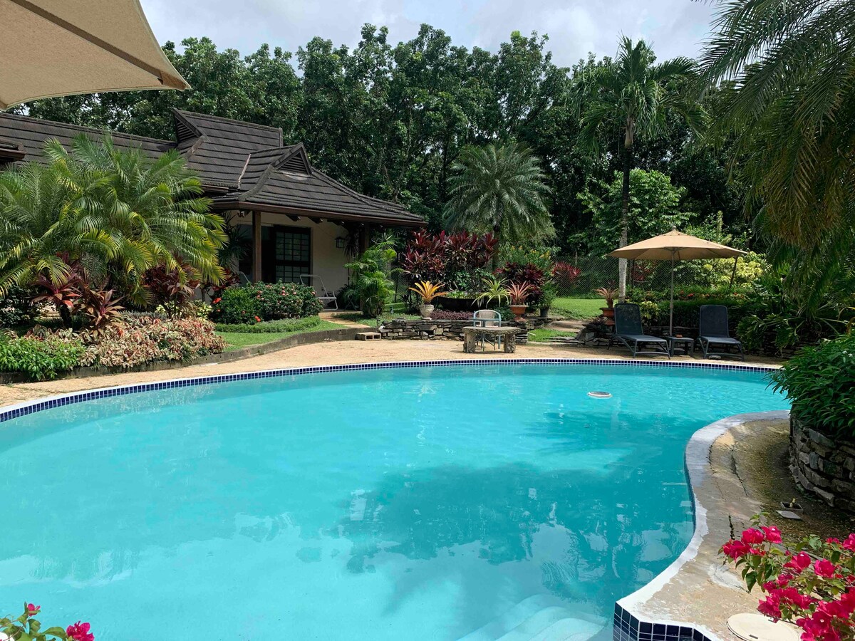 Great for Staycations, convenient for staying if going on eco trips also near the Airport. Walk or jog around the flower farm. Relaxing ambience. Beautiful gardens. Romantic evenings in the garden with solar lights. Chill out beside the pool with a tropical cool drink. Same as Beautiful Balinese setting It is the same location Offering another room with ensuite bathroom. This room has a king size bed. Gated country living with a lovely ambiance. Enquire about long term stays and prices