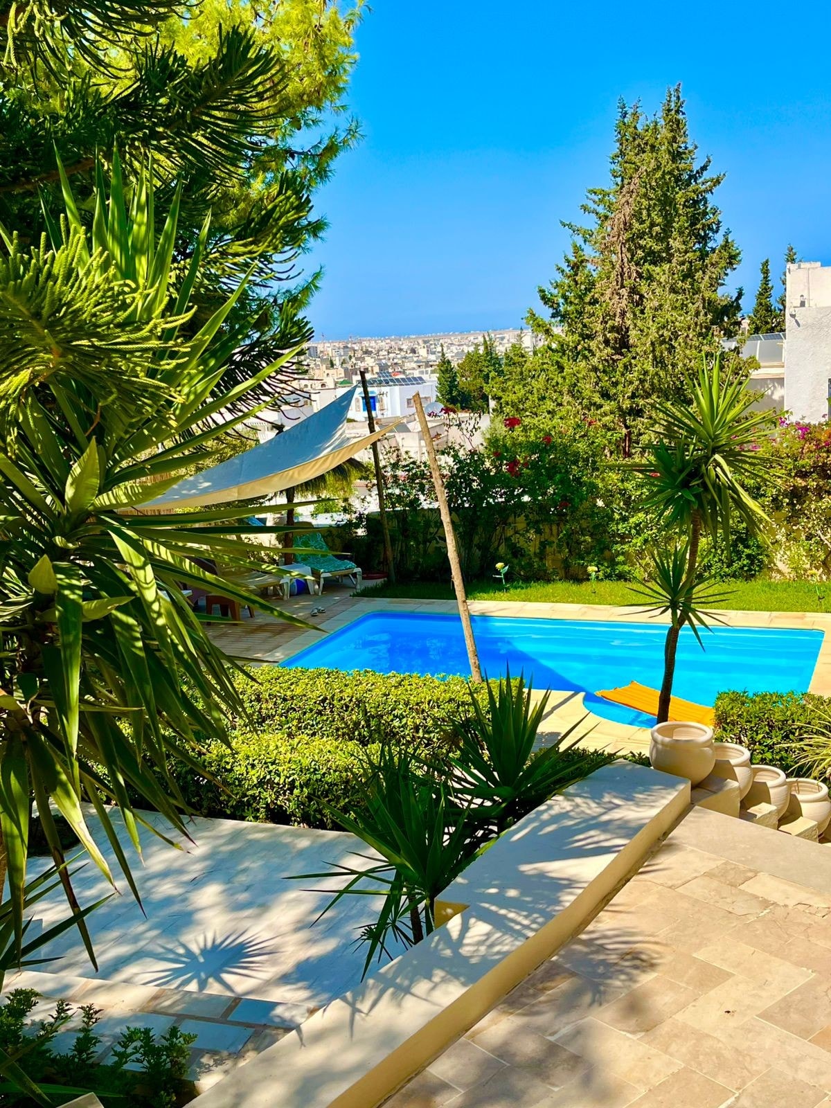 Villa de arquitecto, Dar Fares ofrece una inmersión en la cultura y la decoración tradicional tunecina. Este lugar combina el encanto de lo antiguo y todas las comodidades modernas. Ideal para una estancia profesional o turística en pareja La piscina y su terraza le invitan a disfrutar del sol de Túnez. El palmeral y el huerto también le harán olvidar la vida urbana a 10 minutos de puntos de interés como Sidi BouSaïd, Cartago, El Lago y el aeropuerto.