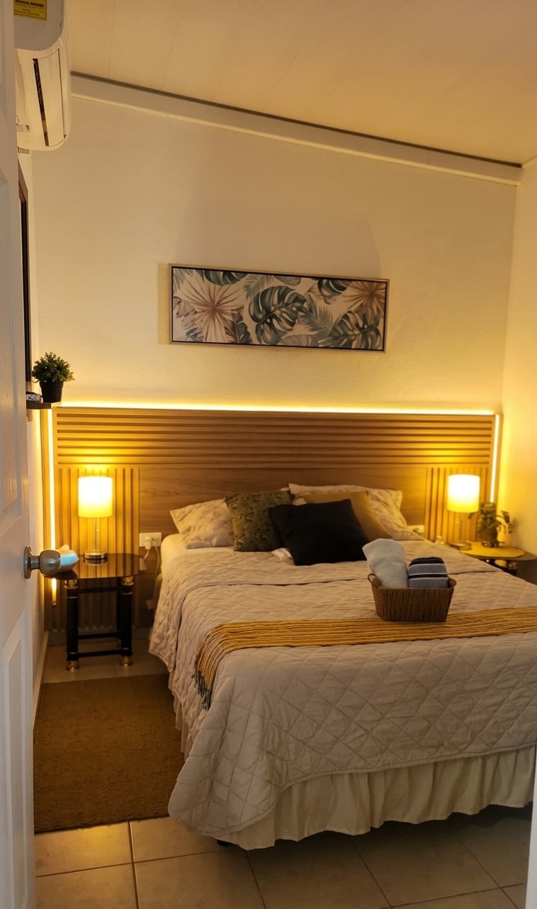 Villa de Vientos, en el corazón de Apaneca, cautiva a primera vista con su primaveral jardín interior en el que convergen tres apartamentos. Independientes, equipados al detalle y con baño propio, todos ofrecen confort, privacidad y lo necesario para sintonizar con la naturaleza, la tranquilidad del pueblo y tener una estadía memorable. El Apartamento 1, con un dormitorio y un espacio multifuncional con cocina y comedor, acomoda a 4 personas, facilita un sofá cama en sala.