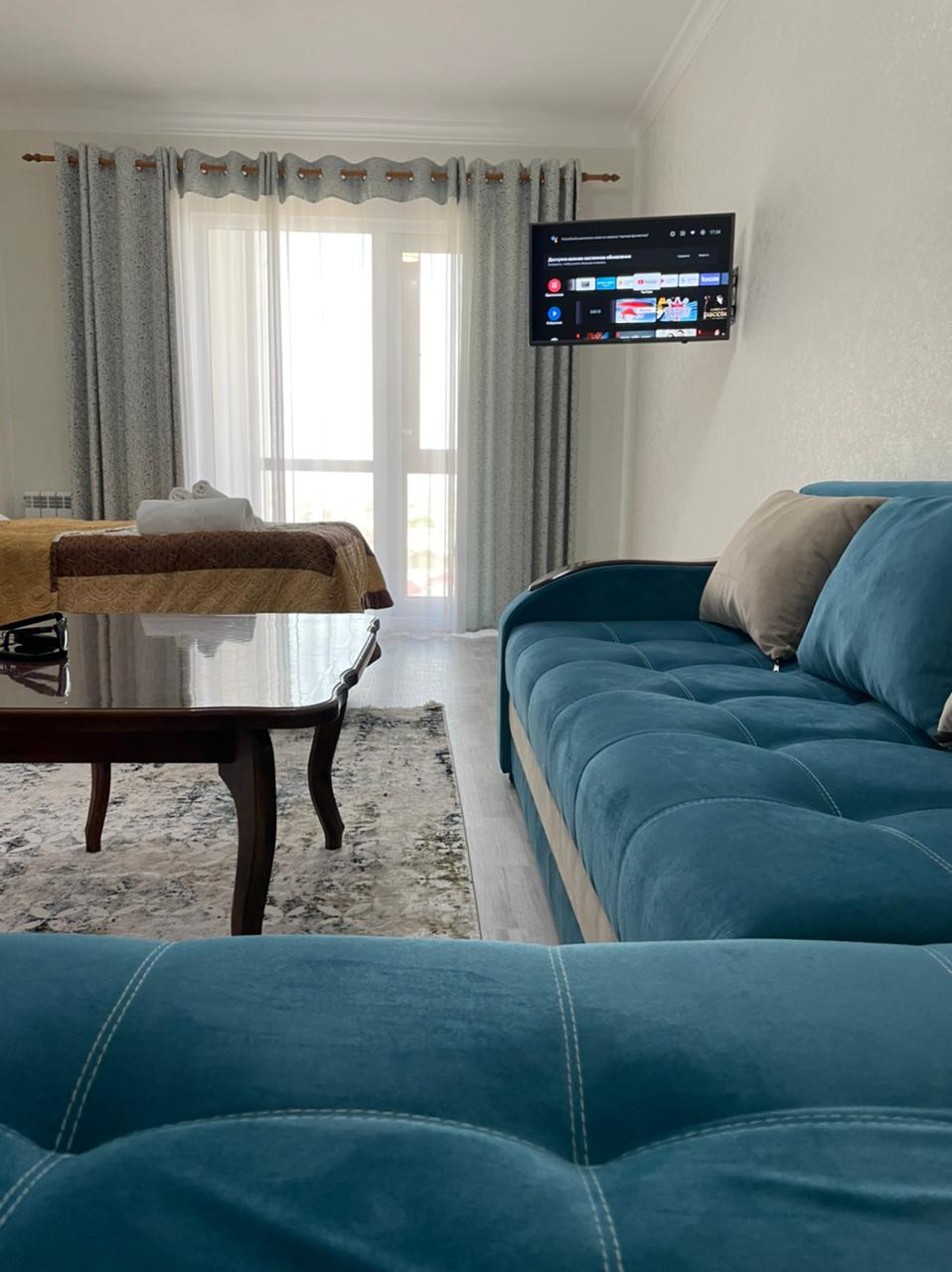 Bienvenido al apartamento de élite ubicado en el complejo residencial Al-Farabi cerca de la plaza. El apartamento está recién reformado con todos los elementos básicos necesarios para una estancia larga y cómoda para una estancia larga y cómoda: todos los electrodomésticos, internet wifi de alta velocidad, TV por cable, plazas para dormir 2, también hay un sofá plegable de 2 camas para los huéspedes, todos los muebles necesarios, platos para cocinar y comer.