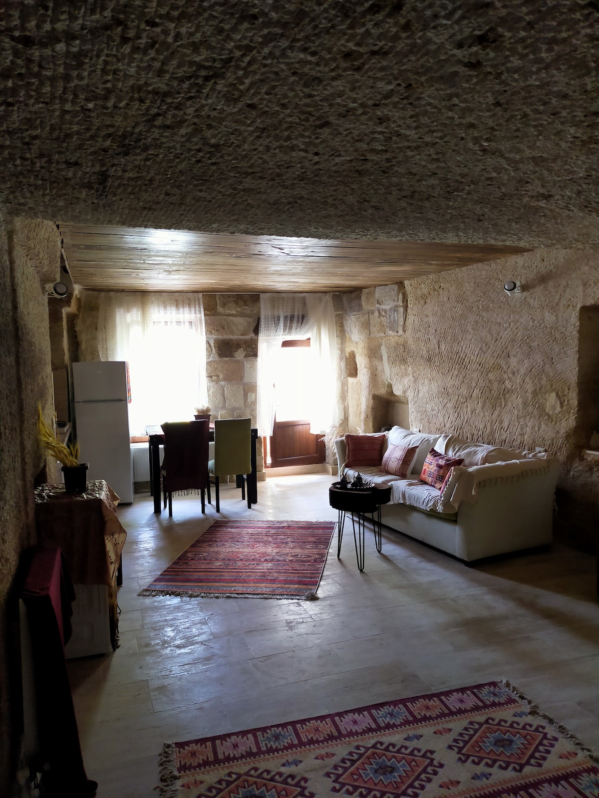 Inspirado en el amor por el estilo turco y la facilidad del diseño moderno, nuestro edificio cuenta con 3 niveles y dos apartamentos. El apartamento de piedra de arriba es luminoso y espacioso, con dormitorio tamaño queen con baño privado y un amplio salón con detalles llamativos. El apartamento de la planta baja se encuentra dentro de una cueva, con dormitorio tamaño queen y una ducha/lavabo doble. Ambos apartamentos tienen cocina/comedor totalmente independiente y terraza. Perfecto para cenar al aire libre y disfrutar del ambiente del pueblo después de disfrutar de Capadocia.