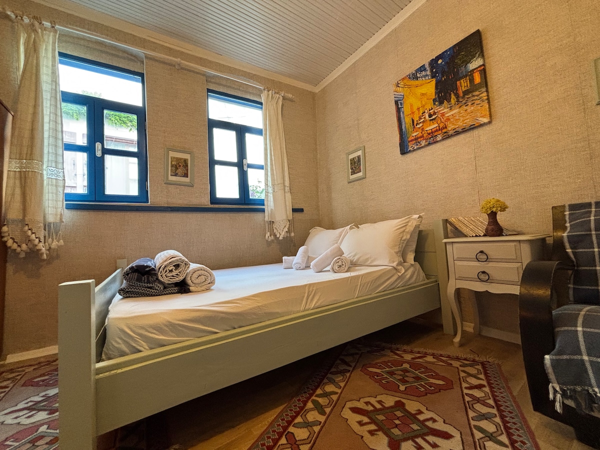 Eine Unterkunft wie diese, die sowohl geschichtsträchtig als auch einzigartig ist, findest du nicht so schnell wieder. Die Höhlenräume bestehen aus einem ehemaligen Stall mit Weinpresse und Tandir und einem uralten Schlafzimmer mit Kamin und Waschraum. Die Unterkunft ist geschmückt mit alten Teppichen und Malerei und so zu einem magischen Ort geworden. Hier kann man den Frieden der Erde erleben, ein Detox von der Zeit. Aus der Tür tritt man in einen Garten in dem man WLAN empfängt.