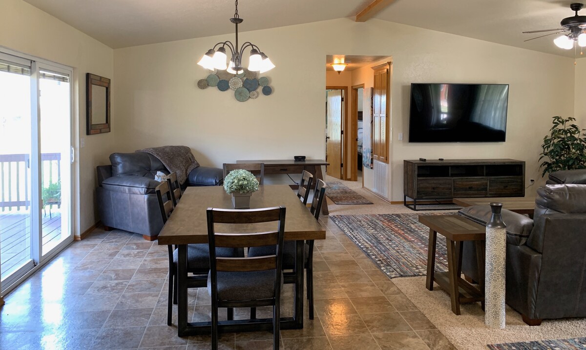 Enjoy the beautiful forest view from the large deck & tall living room windows. A gas grill, fire pit, dry sauna, Wi-Fi, and TV (including Netflix) are also available. The house borders the Chickasaw National Recreation Area (CNRA), which allows bow hunting (behind my house) & gun (1 mile north). Boat docks & swimming areas are nearby at Arbuckle Lake. You will be a short drive from local attractions:CNRA, Turner Falls, Arbuckle Wilderness, Chickasaw Cultural Center, and Artesian Casino, & Spa.