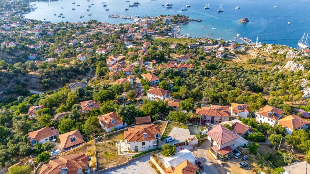 Increíbles vistas al mar y al bosque. Ideal para unas vacaciones tranquilas. Los dos departamentos se proporcionan juntos. Las entradas son diferentes, un dúplex ideal. Piensa en ello como dos 1+1 separados porque las entradas son diferentes. Tiene una capacidad de 5 camas. Para familias. Cerca del mar y de lugares comerciales céntricos. La piscina al aire libre es compartida. Se puede utilizar un ascensor para bajar a la casa. Las playas están a 400 metros de la carretera y a 8 minutos a pie. La antigua ciudad de Amos y Kumlubük están muy cerca. Permiso de alquiler diario disponible.