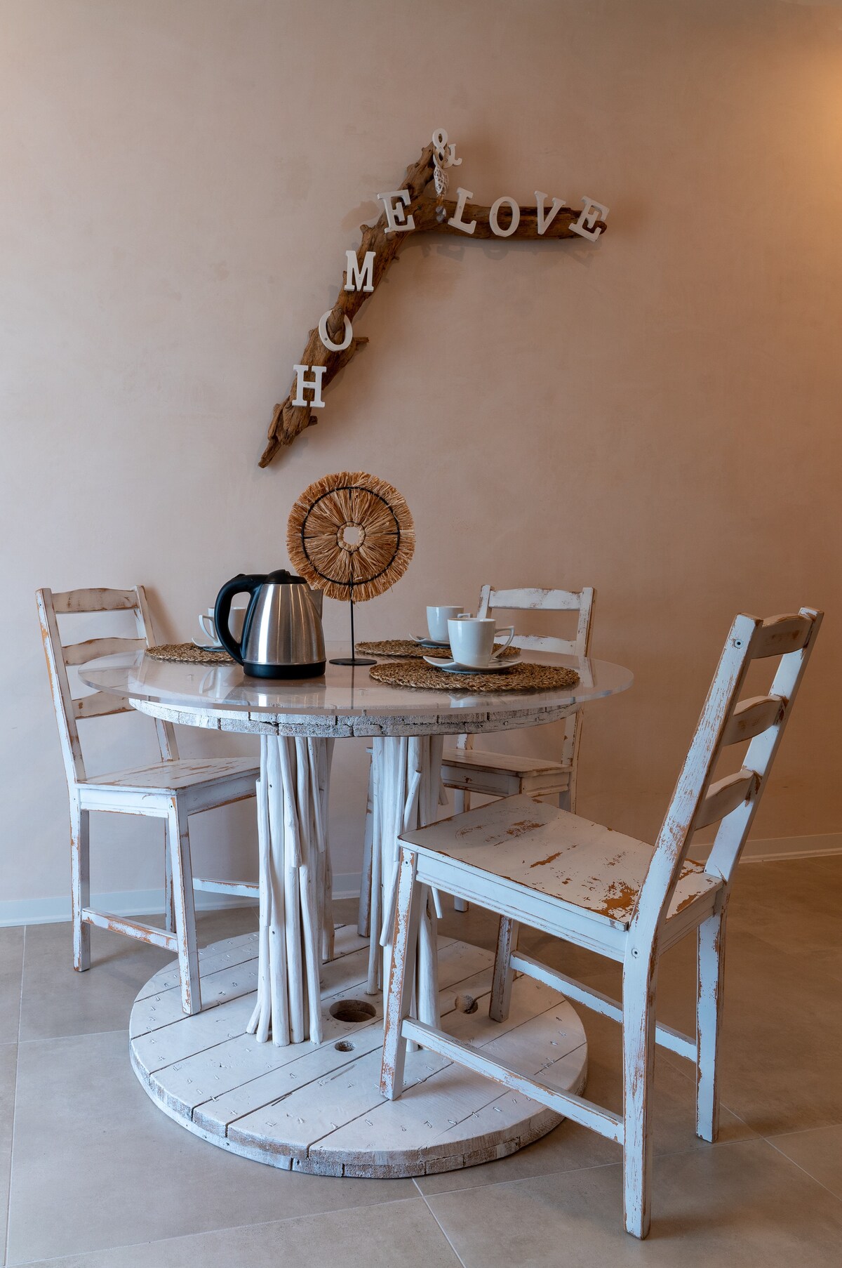 A 45sqm house, separated from the main complex. Ideal for romantic getaways. It consists of: one bedroom, bathroom and living room with an open space kitchen. It includes: A sofa bed in the living room, which can be used as an extra bed. Bed linen, bathroom towels and beach towels Cleaning services halfway through the week.