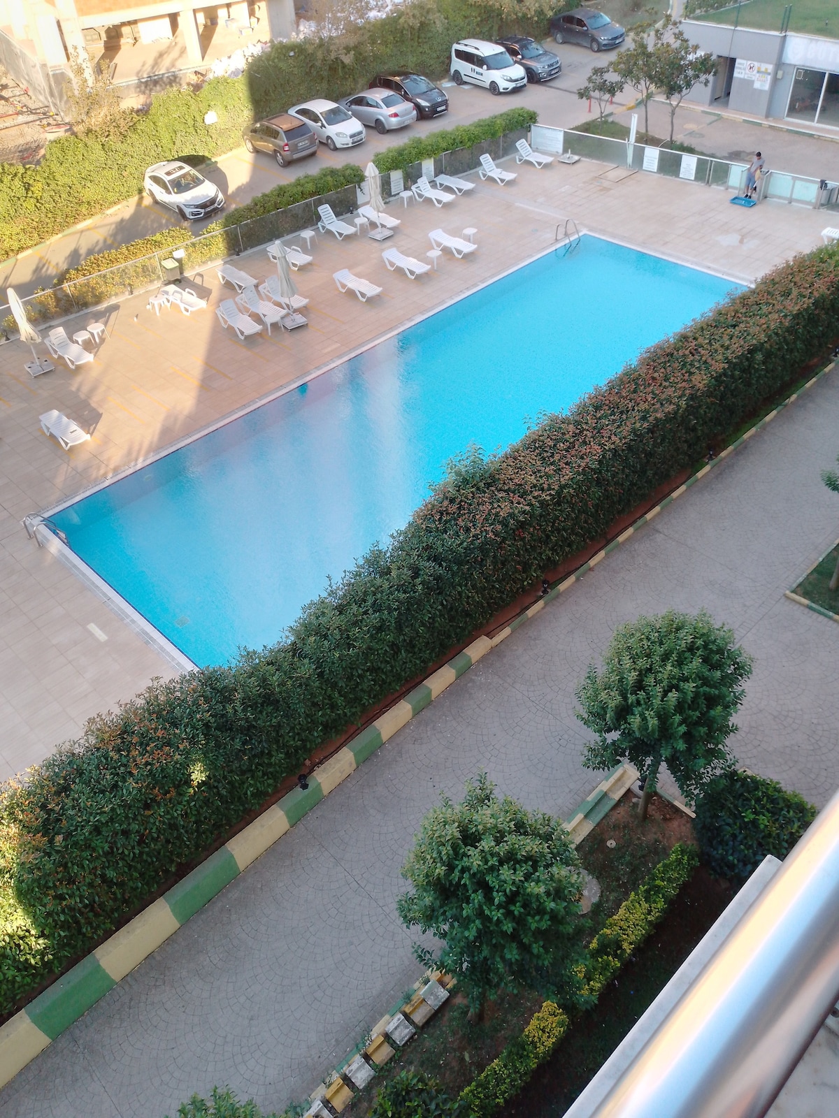2 habitaciones y 1 salón en Sabiha Gökçe, balcón con vista a la piscina