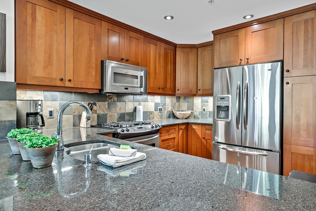 Blue Moose es un condominio de lujo de un dormitorio recientemente renovado y amueblado con cama tamaño king y sofá cama tamaño queen. Nuevo para 2025: mejoras importantes en el baño y la cocina. UBICACIÓN PERFECTA Este moderno refugio de montaña está situado junto a un arroyo de montaña prístino. Sigue un sendero natural junto a un arroyo y en cuestión de minutos estarás en el centro de Canmore con tiendas de moda, cafeterías, camiones de comida y restaurantes informales y de primer nivel.