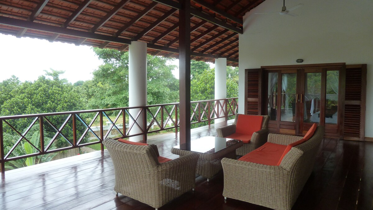 La villa tiene 328 metros cuadrados de espacio habitable en dos plantas y tiene una hermosa zona de estar en la azotea con unas vistas increíbles. Hay tres dormitorios grandes, todos con baño privado. Todos los dormitorios tienen una cama tamaño king y un sofá cama. Los dos dormitorios de la primera planta tienen balcones con bonitas vistas. Hay un comedor al aire libre, barbacoa, jardín, zona de patio, lavadero y piscina de 5 m x 10 m. Privacidad y tranquilidad en una zona preciosa junto al bosque nacional de Kep.