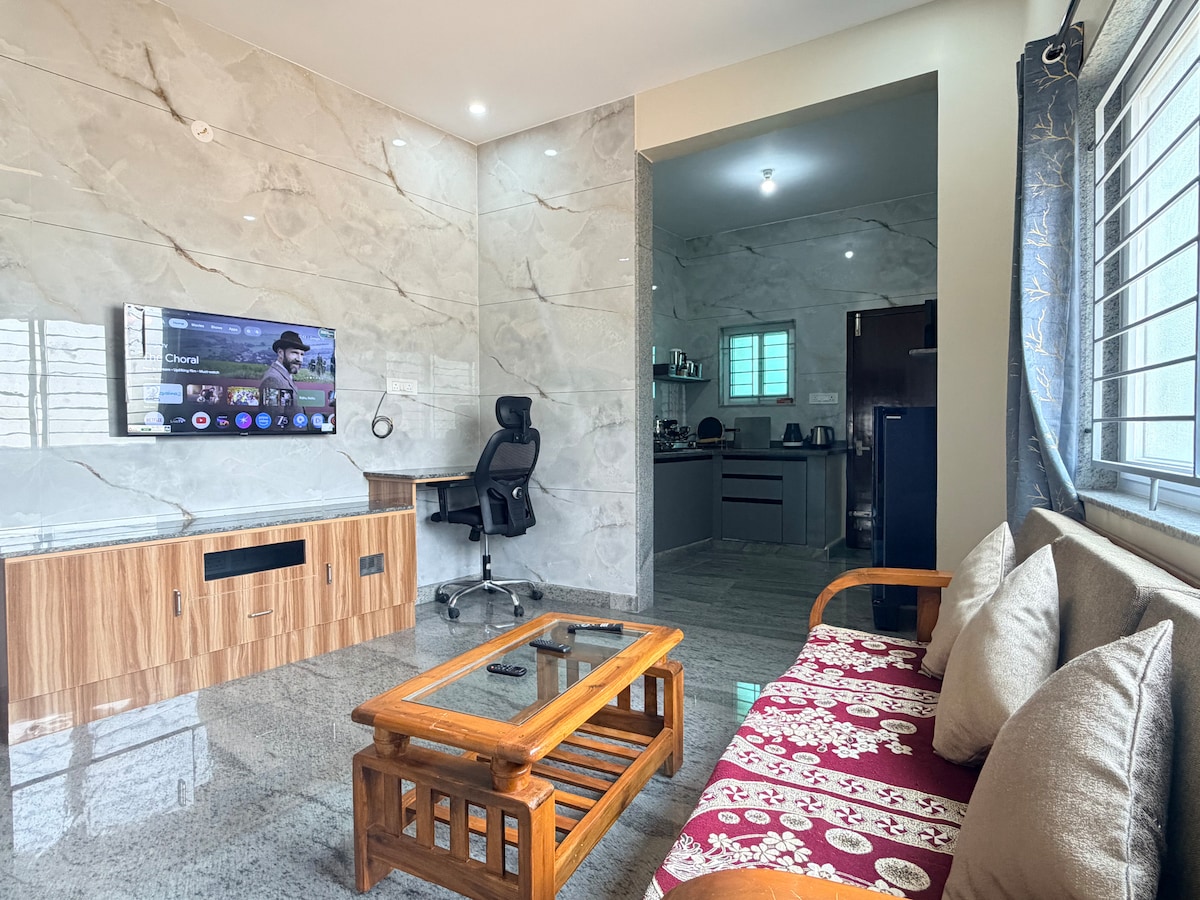 A comfortable private 1BHK apartment hosted by "Simpl Homes", located near Sarjapur Road and Delhi Public School Bangalore East. Just 3.5 km from Wipro Kodathi Gate and 5.5 km from RGA Tech Park, it’s convenient for professionals visiting the Sarjapur tech corridor. The apartment includes a bedroom, living area, kitchen, bathroom, and reliable WiFi, offering a fully private and practical stay.