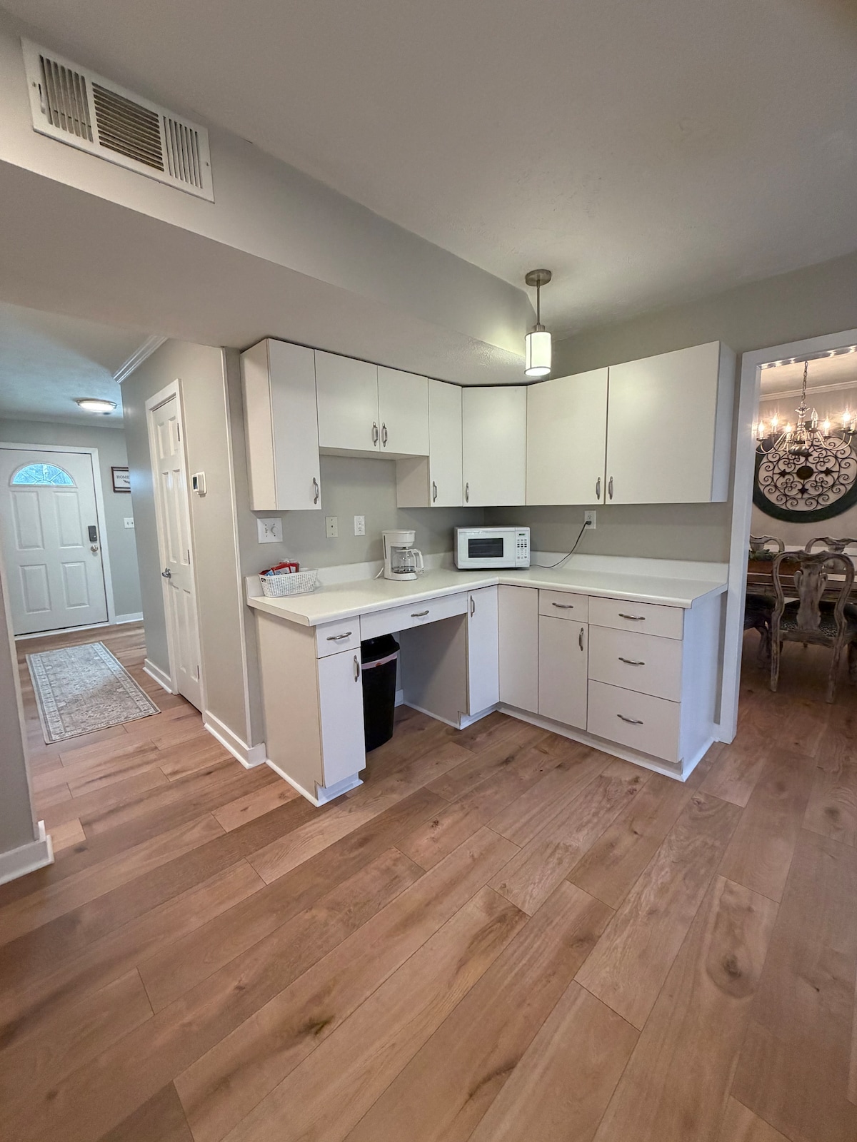 NEW FLOORING, new area rugs in each bedroom. Fresh trim around windows & doors including baseboards. Our home is fully furnished with all the comforts of home. All bedrooms are upstairs with 2 full baths. Laundry is also upstairs. Kitchen fully equipped. Our home is in a lovely quiet neighborhood. Close to shopping, restaurant and outdoor trails for biking, running, walking and golf carting. All surfaces are sprayed & sanitized. All bedding, including comforters are freshly washed.
