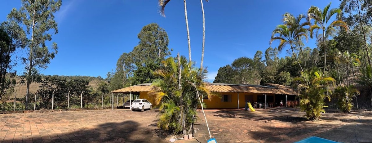 Alquilamos para familias hermoso sitio situado en Minas Gerais Visconde do Rio Branco,Zona da mata mineira Mucha zona verde con piscina, Campo de fútbol Voley Network Parque infantil Quiosco Piscina 6 baños pergolaado Wi-Fi Estacionamiento Cocina completa con utensilios Dos balcones con hamacas. Asfalto A 5 km de la carretera Estarás encantado con nuestro hermoso espacio.