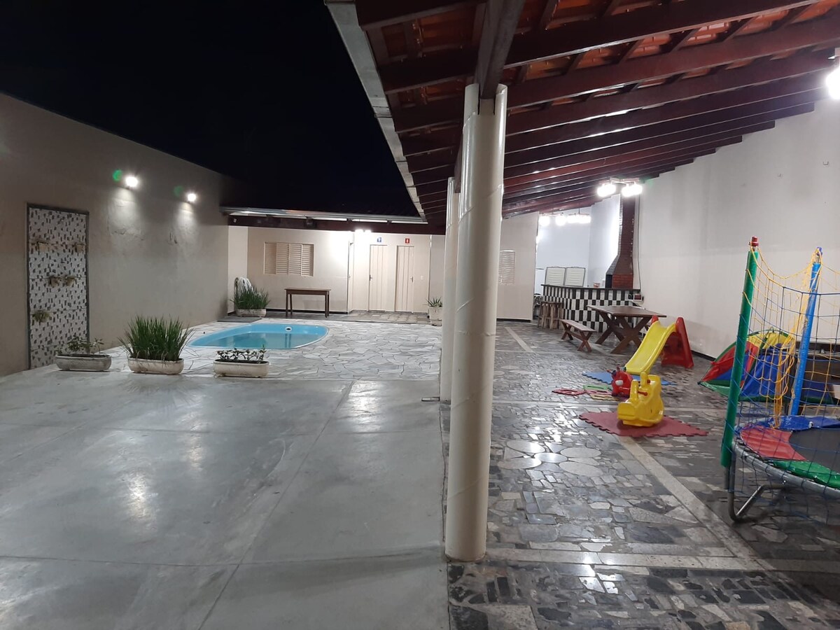 ¡AMBIENTE ACOGEDOR! Casa cerca de la región central, hermosa vista panorámica, frente al Parque Jacarandá y cerca de Praça Shopping con fácil acceso a tiendas y servicios. Disfruta de la relajación con tu familia, amigos, socios comerciales o solo en este alojamiento tranquilo y único en medio de jardines, flores y aves. ¡Experimenta momentos agradables, divertidos, relajantes y seguros!
