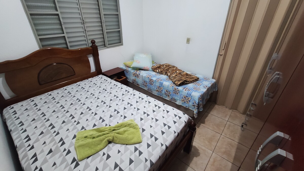 ¡Disfruta de una estancia cómoda en un espacio limpio, organizado y bien equipado! Ideal para ti que estás de paso por Uberaba o que has venido a trabajar o caminar con la familia. Proporcionamos toallas, ropa de cama y artículos básicos de cocina, así como café, azúcar y sal. La ubicación es genial: a 1 minuto de ABCZ y a 4 minutos de Shopping Uberaba y BR-050. Puede alojar hasta 4 personas, con conexión wifi, cocina completa, ropa de cama limpia, ventilador de techo y espacio para el automóvil. ¡Todo pensado con cariño!