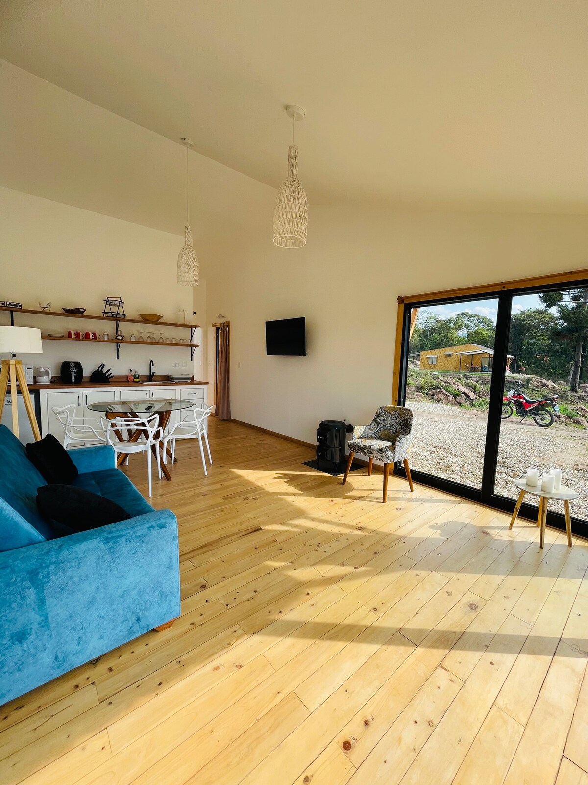 Disfruta de una experiencia con estilo en este alojamiento céntrico y a la vez en el bosque conectando con la paz de la naturaleza y a minutos de la plaza central. Vas ahorrar tiempo y combustible. • Baño con agua caliente • 2 habitaciones con 3 camas • 2 camas de 2 plazas y 1 cama de plaza y media • Terraza con vista al bosque y parrilla • wifi • Sala comedor • cocina equipada • 2 televisores también vas apreciar la variar de aves, ardillas y monitos que nos visitan de la naturaleza.