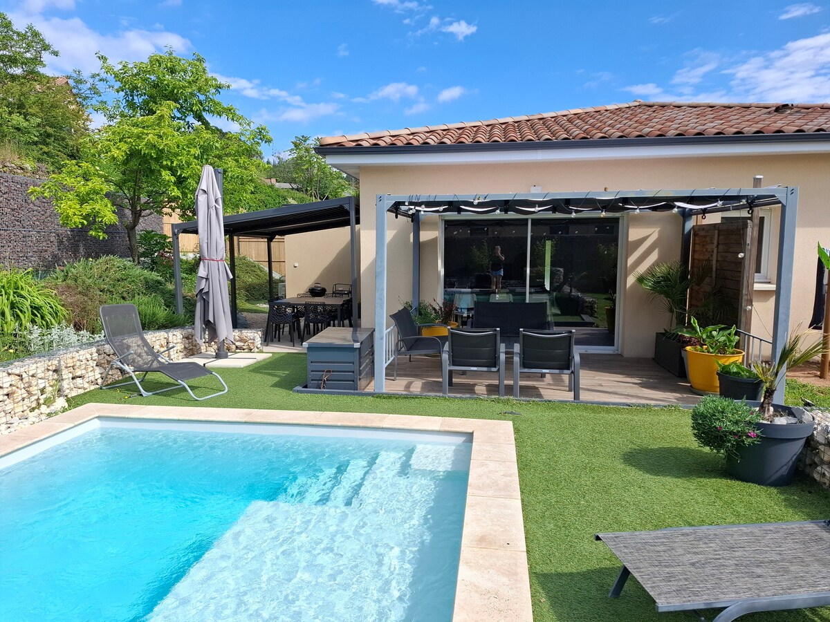 VILLA AIMÉE**** Disfrute de una estancia tranquila en la VILLA AIMÉE, 130 m2, nueva con todas las comodidades, CLASIFICADA 4 ESTRELLAS EN TURISMO AMUEBLADO, con una vista panorámica, a 1,8 km del centro de la ciudad de Aubenas. Situada en una zona residencial tranquila y agradable, se puede llegar al centro de la ciudad de Aubenas en 4 minutos en automóvil o a unos 25 minutos a pie a través de una carretera de barrio, agradable y poco transitada. Ubicación ideal para visitar el sur de Ardèche y relajarse.