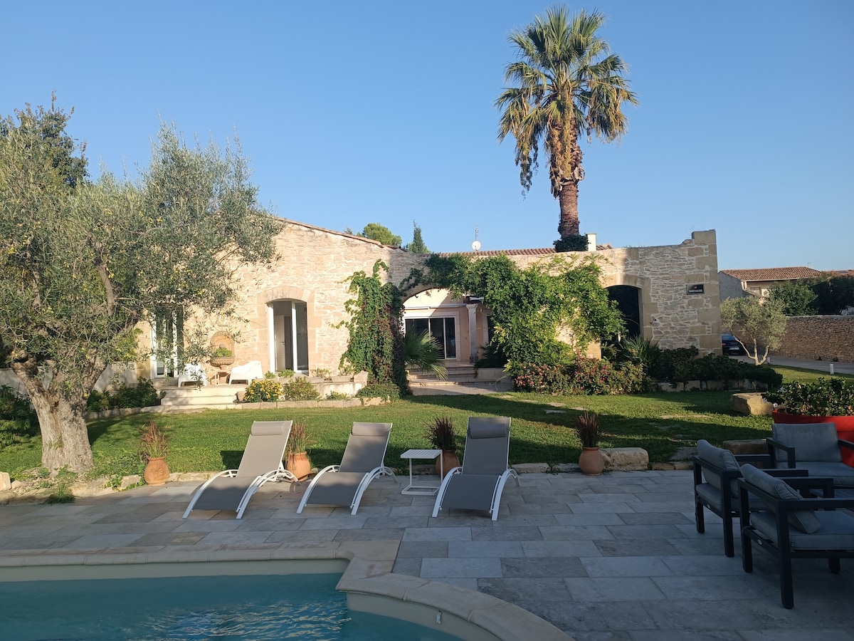 Villa familiar ideal para estadías en familia o con amigos. Mucho espacio 185m² con 4 amplios dormitorios todos equipados con baño privado, buena ropa de cama (4 camas dobles incluyendo 1 King Size y 1 Queen Size), 5 baños, 3 baños separados. Disfrute de un escritorio, gimnasio y zona de juegos (pinball, arcade). Exterior: cancha de petanca en jardín totalmente cerrado. Zona residencial tranquila cerca de Nimes. Wifi de alta velocidad, Netflix. ¡Todas las comodidades para momentos inolvidables!