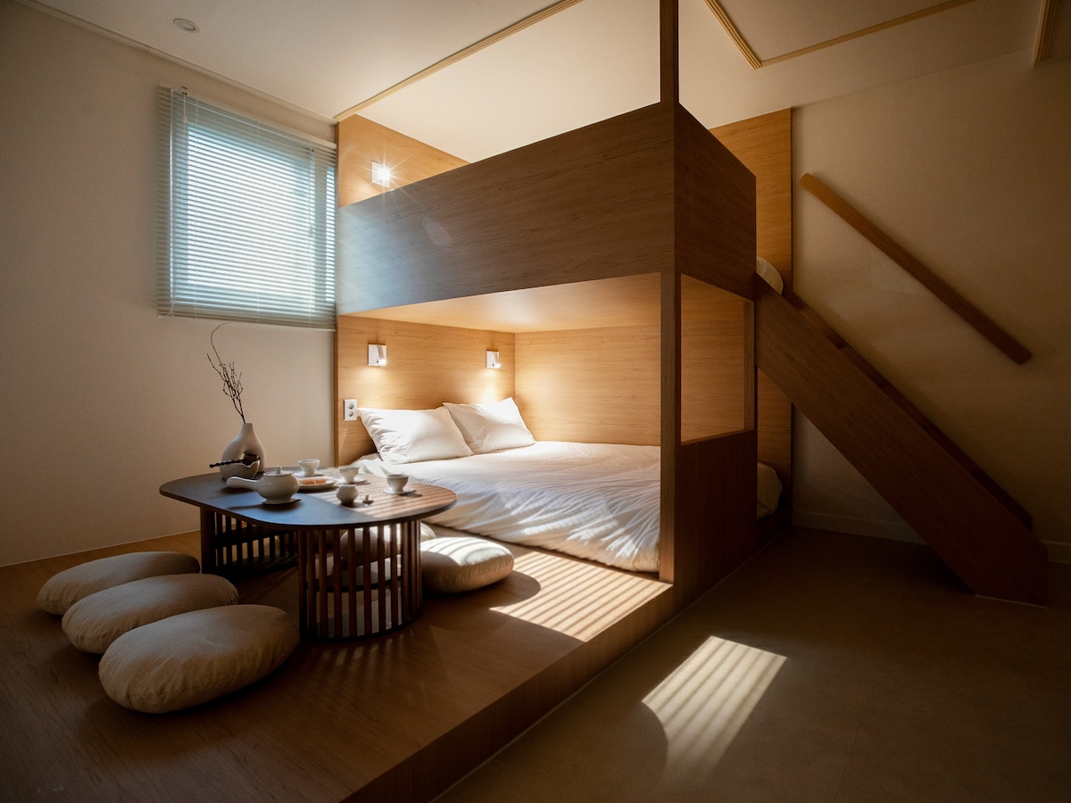 A 5 minutos a pie de Cheonma-jong, Daereungwon, Hwangnidan-gil, acogedor dormitorio con cama queen 3-5