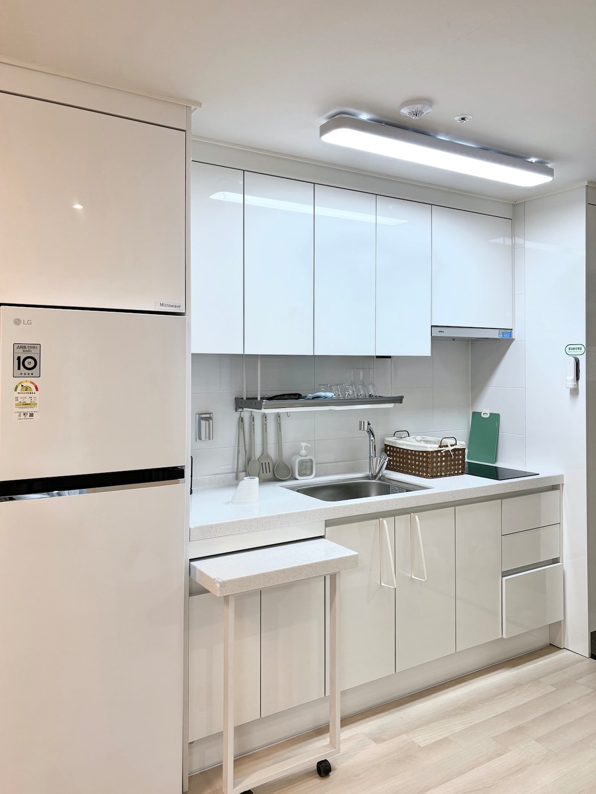 Abierto en 2023 Esta es una residencia de opciones completas. - Check-in sin contacto [Comedor] - una cama de tamaño Queen [Cocina] - utensilios de cocina - nevera, microondas, tetera eléctrica - Lavadora, detergente de lavandería *No hay condimentos [Badera] - Shampoo, acondicionador de cabello, lavado del cuerpo - Secador de pelo, toalla - bidet *No ofrecemos productos de baño desechables ( cepillos de dientes, pasta de dientes, etc.) * Usted puede aparcar en el edificio por una tarifa.