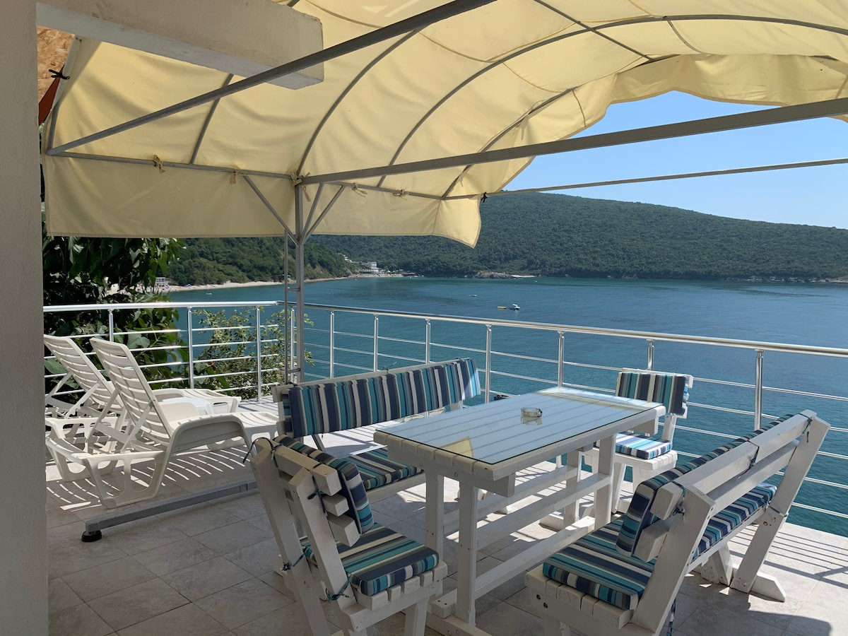 This beautiful, newly renovated house is just a 3 minute walk to the sea. With ceiling to floor windows in the living and dining area, you have a constant, fantastic view of the quiet little bay with beach and restaurant. Grapevines garnish the lower terrace, while the large rooftop terrace is available for sunbathing and relaxing. It’s a 10 minute walk to the village of Utjeha, but the next larger town is Ulcinj, with the Adriatic’s longest beach.