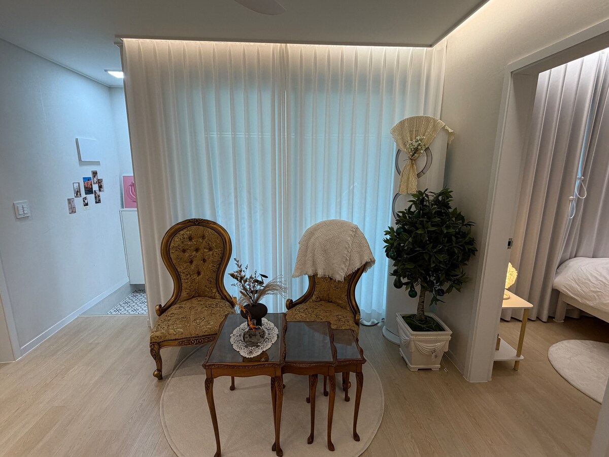**ESCONDITE 🧚🏻♀️ Escondite: donde esconderse cuando se juega al escondite.,,** 💕Instagram: Buscar 'Escondite' Puede contactarnos por DM💕 Está en Dal-dong, la calle más concurrida💕 de Ulsan💕 ¡Hay lugares de moda a los que se puede ir andando! Los grandes almacenes también están a poca distancia; pero el alojamiento es tranquilo🧚🏻♀️ * Hay descuento por estadía consecutiva (consulte primero ^ ^) * Amplia sala de estar y dos dormitorios independientes : Cama de matrimonio * El número máximo de personas es de 6 ^ ^ Si hay más de 4 personas reservadas Colocaremos un colchón. *Interior tranquilo basado en madera Proyector de luz y Netflix Disney Plus YouTube. Mesa grande de madera maciza de 2 metros. Con plantas verdes Puedes tomar un descanso cómodo y elegante~ * No se puede cocinar. (Si se queda mucho tiempo o tiene alguna circunstancia especial, díganos ^ ^) A solo unos pasos, hay muchos restaurantes ^^ La comida a domicilio también se puede pedir hasta tarde + llega muy rápido ~ * ¡Pero! Hay una variedad de platos y vasos para una mesa maravillosa. (Anfitrión que se toma en serio la configuración de la mesa ^ ^)