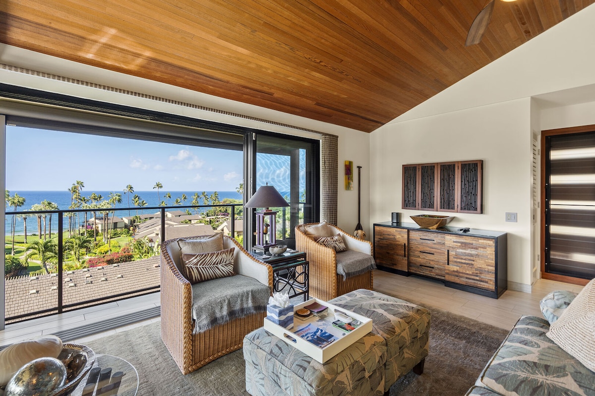 Apartamento de lujo de 1 dormitorio y 2 baños que ha sido completamente renovado. Nuestro apartamento tiene preciosas vistas al mar, así como vistas a los exuberantes jardines tropicales y a la piscina. Cuenta con una cocina gourmet totalmente equipada con electrodomésticos de alta gama, especias variadas, café y té. Las vistas del atardecer desde el lanai son impresionantes. Si nuestro apartamento no está disponible durante los días de tu viaje, consulta la disponibilidad de nuestro otro apartamento Wailea Palms en https://www.airbnb.com/rooms/1728525 El alojamiento no es adecuado para niños o bebés.