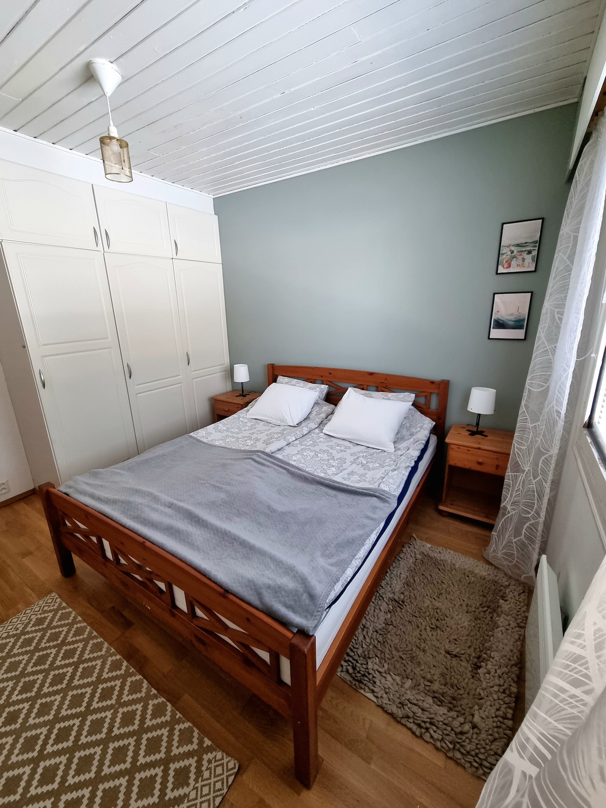 El apartamento, compuesto por dormitorio, cocina y aseo, se encuentra en el edificio del patio, mientras que la ducha está en la planta baja del edificio principal (entrada independiente). En el edificio principal y en el patio hay dos gatos que se mueven libremente. El centro de la ciudad está a unos 4 km, Yyteri a unos 17 km. La tienda más cercana está a 1,2 km.