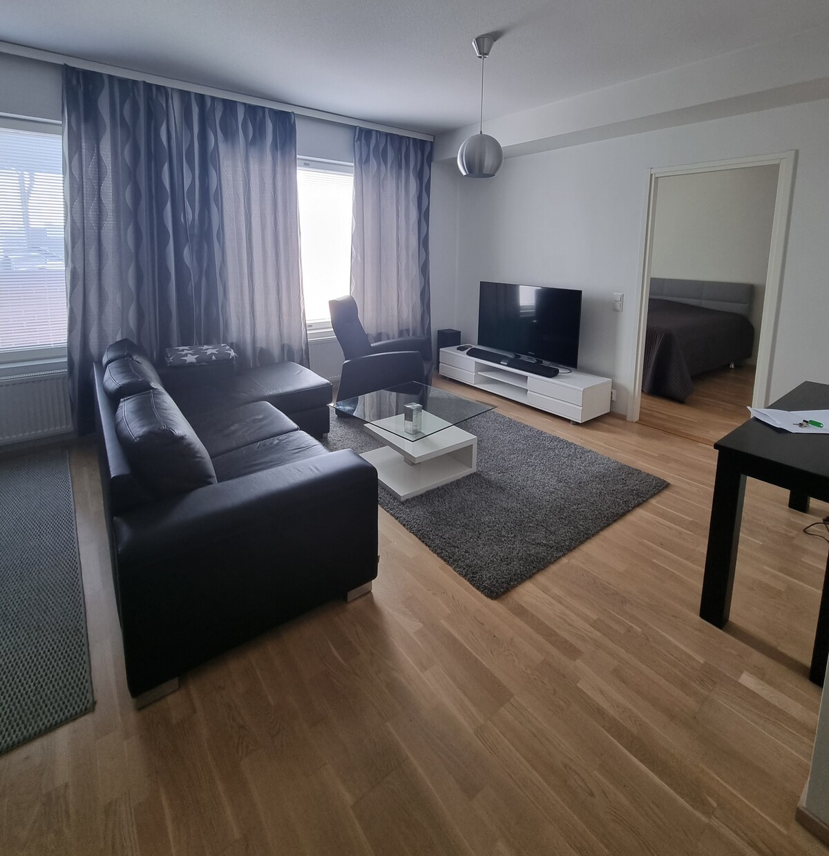 Intercambio de llaves sin contacto Aire acondicionado agregado ¡Bienvenido a un estudio luminoso y ordenado (40 m2) en Viikkari de Pori! Está ubicado en el segundo piso, sin ascensor. El apartamento cuenta con cuatro camas. La alcoba, que se puede oscurecer con cortinas, tiene una cama americana de 160 cm y la sala de estar tiene un cómodo sofá cama de 140 cm. La cocina está completamente equipada. El anfitrión proporciona sábanas y toallas. A poca distancia a pie del centro de la ciudad y del centro de viajes (estación de autobuses y trenes). Mercado a 950 m.
