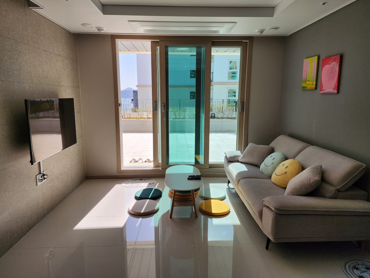 (Oferta especial) #Terraza con vista al mar/Puerto deportivo/Estación de Yecheon a 10 minutos/Supermercado a 1 minuto a pie/Habitación para 3 personas (2 camas)/Moderno y limpio/Estacionamiento gratuito