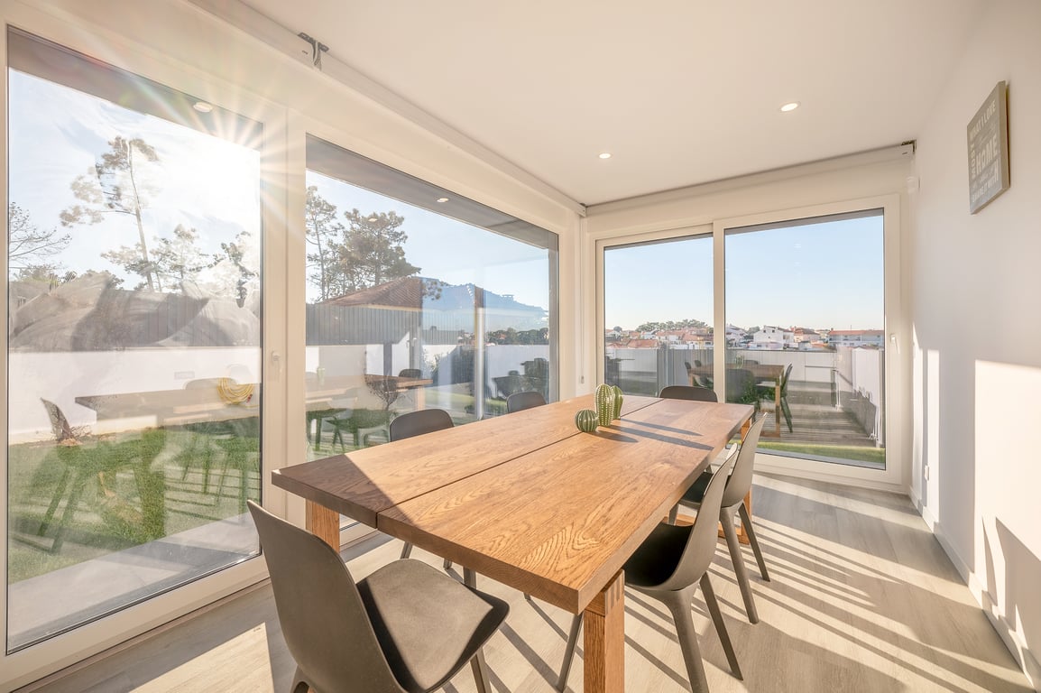 Casa do Pinhal, en Aroeira, tiene capacidad para 8 huéspedes. A 5 minutos de la playa de Fonte da Telha y una docena de otras playas. La casa con porche, tiene 3 dormitorios, 2 aseos, cocina de 20 m2, sala de estar con sofá cama, aire acondicionado, chimenea y calefacción central. Tiene un jardín, bosque de pinos, barbacoa y juguetes. Total de 640 m2. Cerca se encuentra el Golf da Aroeira. En Fonte da Telha hay buenos restaurantes, bares, actividades náuticas y de buceo y pesca para el arte Xávega. La Costa da Caparica está a 10 metros y Lisboa a 20 metros.