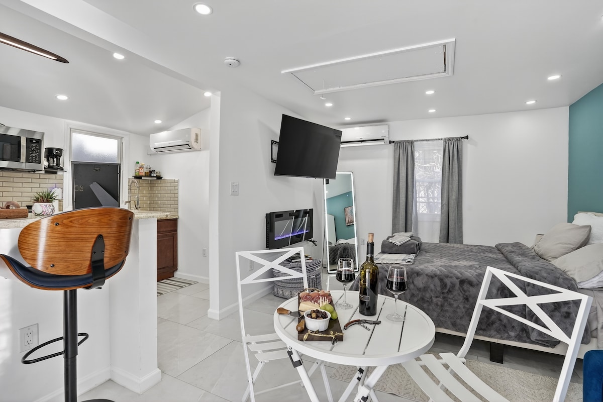 Disfruta de una estancia elegante en este estudio céntrico, perfecto para explorar Nueva York mientras disfrutas de la tranquilidad de un vecindario tranquilo. A solo tres cuadras de la parada de autobús con servicio directo a Manhattan. A minutos del aeropuerto de Newark para un viaje fácil. Ideal para viajeros solos, parejas y nómadas digitales que buscan comodidad, conveniencia y un refugio relajante con un espacio confiable para trabajar y relajarse.