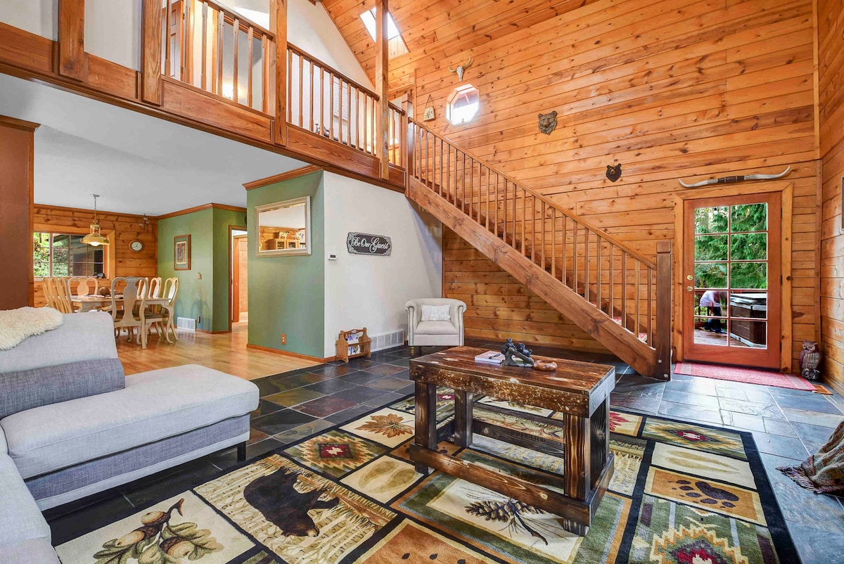 *SAUNA NUEVA* ¡Entra en el encanto de Dancing Bear Cabin! Prepárate del encanto de este elegante refugio. Disfruta de las vistas al río y a las montañas lejanas desde 2 dormitorios acogedores y un amplio espacio habitable. Disfruta de un espacio privado al aire libre, con una chimenea protegida, ideal para saborear la belleza de PNW. Comienza el día en el jacuzzi, mira el amanecer y relájate en el interior con una noche de cine en una pantalla grande. En Dancing Bear Cabin, ¡los amigos peludos son cálidamente bienvenidos para una escapada encantadora!