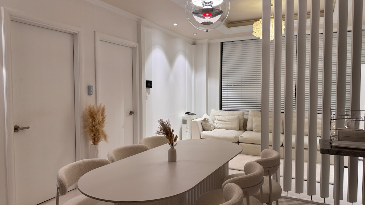 Es una casa sensacional con cálida sensibilidad y elegante interior, y es un espacio con alta satisfacción tanto para viajeros como para viajeros de negocios. La estación de metro está a 10 minutos, los grandes almacenes a 8 minutos y el hospital universitario a 7 minutos, por lo que los principales movimientos están cerca, lo que hace que sea muy fácil moverse, y puedes sentir comodidad y estabilidad con la nueva y elegante ropa de cama interior y de clase hotelera. Puedes acceder rápidamente a la sucursal principal y a la sucursal de la Iglesia del Sagrado Corazón, a la calle principal de los cafés y a la zona comercial central de Dunsan, lo que hace que tu viaje en la ciudad sea más cómodo. #Alojamiento en Daejeon #Alojamiento en Dunsan-dong #Alojamiento cerca de la estación del Ayuntamiento #Alojamiento sensorial en Daejeon #Cerca de Seongsimdang #Alojamiento de viaje en Daejeon #Punto caliente de Daejeon #Estancia de curación en el centro #Zona turística #Nuevo sensorial #Alojamiento interior sensorial #Ropa de cama de hotel usada #Alojamiento disponible con Netflix #Coupang Play disponible #Alojamiento equipado con juegos de mesa