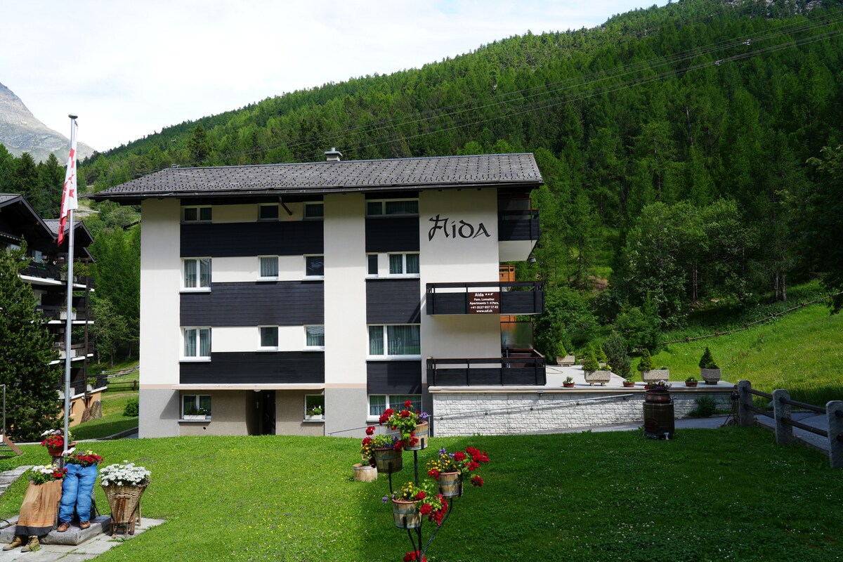 ¡Da la bienvenida a nuestro refugio alpino! Nuestro encantador departamento de 2 habitaciones está ubicado en el borde del bosque, en la parte más tranquila y al mismo tiempo más soleada del pueblo sin automóviles. Aquí puedes disfrutar de pura relajación y un impresionante telón de fondo de montaña con 18 majestuosos cuatro mil. Ya sea en verano para maravillosas caminatas y excursiones por la montaña o en invierno para inolvidables días de esquí y snowboard, este departamento es el punto de partida perfecto para tu aventura alpina.