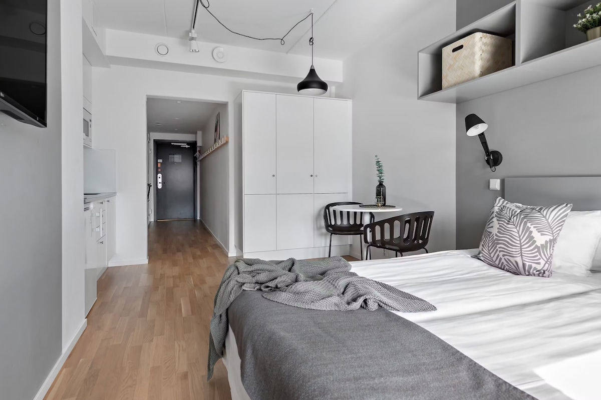 ¡El mejor apartahotel de Estocolmo! Perfecta ubicación cerca de transporte y actividades de ocio. A 20 minutos de la ciudad de Estocolmo y a 20 minutos del aeropuerto de Arlanda. El hotel está recién construido entre 2018 y 2020. Habitaciones totalmente equipadas con cocina completa, WIFI, Chromecast TV, etc. Los apartamentos en la planta baja tienen su propio patio y muchos apartamentos tienen su propia lavadora y secadora. Nuestros huéspedes disponen de terrazas en la azotea y plazas de aparcamiento. La limpieza y el cambio de sábanas y toallas se incluyen semanalmente.