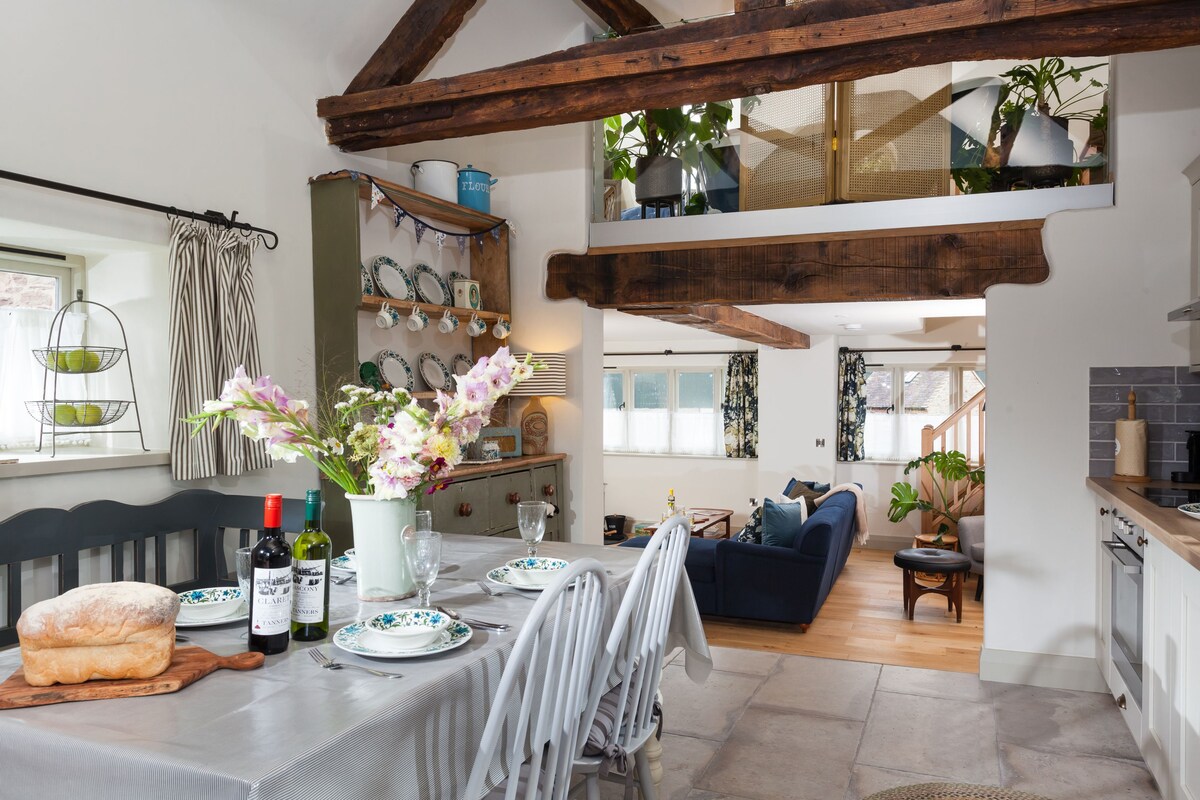 The Dairy se encuentra en nuestra pequeña granja de 200 acres que está escondida en las profundidades de las colinas del sur de Shropshire. Hemos dado una nueva vida a la lechería, que originalmente era la antigua lavandería, al crear un nuevo espacio habitable, manteniendo al mismo tiempo la sensación original de su uso anterior. The Dairy se encuentra en privado dentro de su propia área, cerca de la casa de campo del siglo XVII, con vistas a las pistas huecas que pasan por la granja.