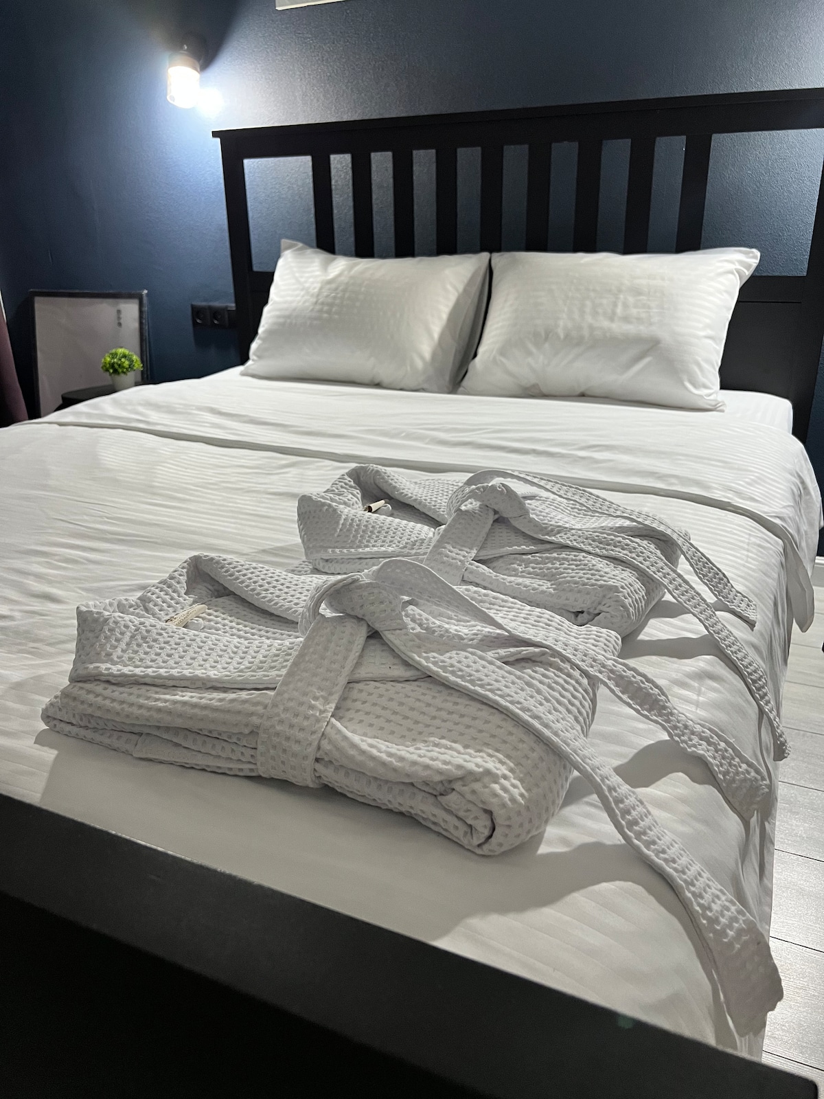 В квартире есть все необходимое для комфортного проживания: 1 большой кровать и 1 раскладной диван, высокоскоростной интернет, wi fi. • Есть гостиничные наборы (тапочки, мыло, шампуни, фен). • Бытовая техника, вся посуда, необходимая для приготовления и принятия пищи. • Стиральная машина, чистое пастельное белье и полотенца.