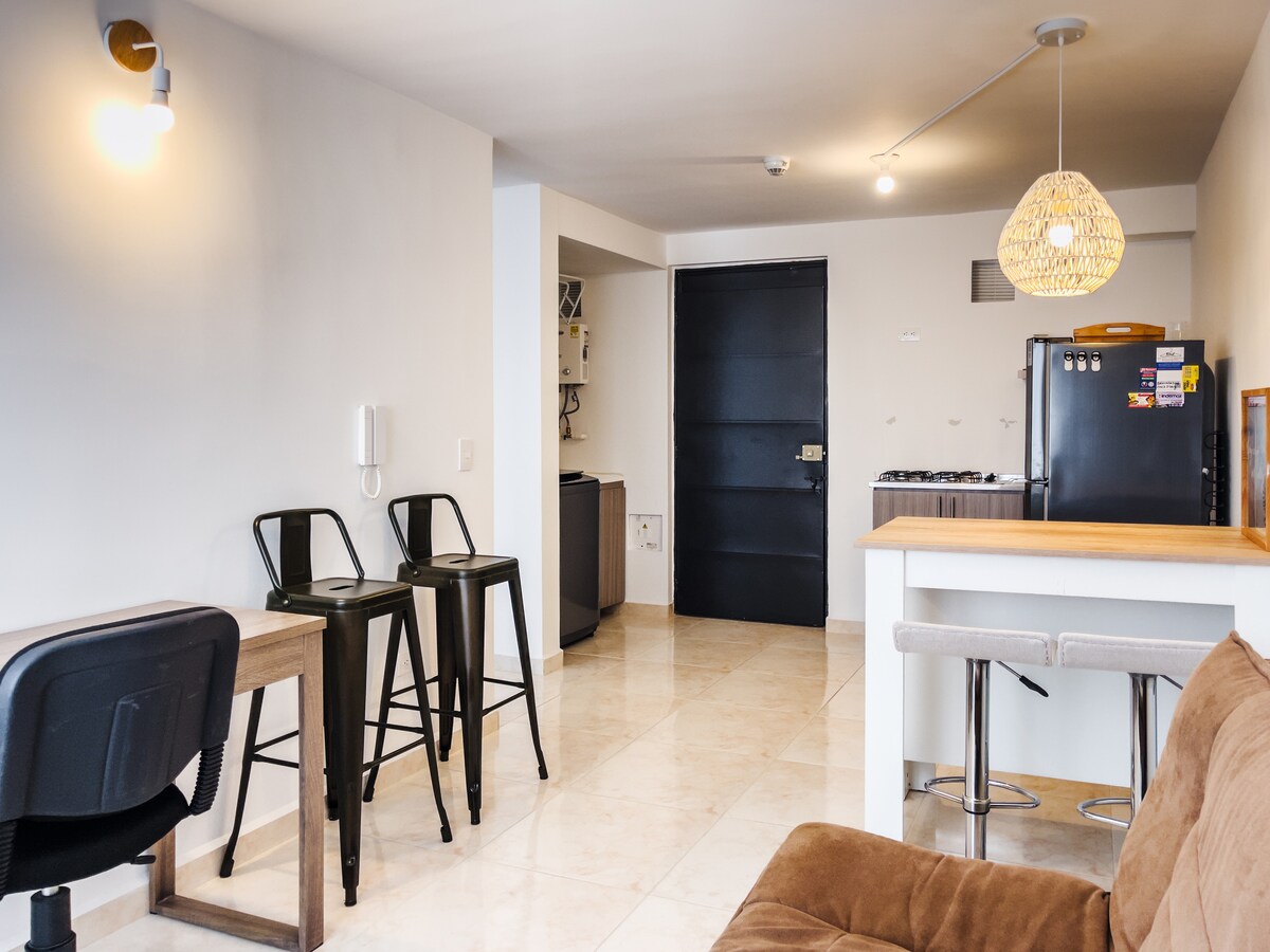 Disfruta de este moderno apartamento en el norte de Armenia, perfectamente amoblado y equipado con utensilios de cocina para que no te falte nada. Relájate en su cómoda cama Queen y déjate sorprender por las vistas únicas: la majestuosa cordillera central y los mágicos atardeceres de la ciudad. Ubicado en una zona segura con vigilancia privada 24/7, es el lugar ideal para explorar Salento, Filandia y el corazón del Eje Cafetero. Perfecto para una estadía inolvidable.