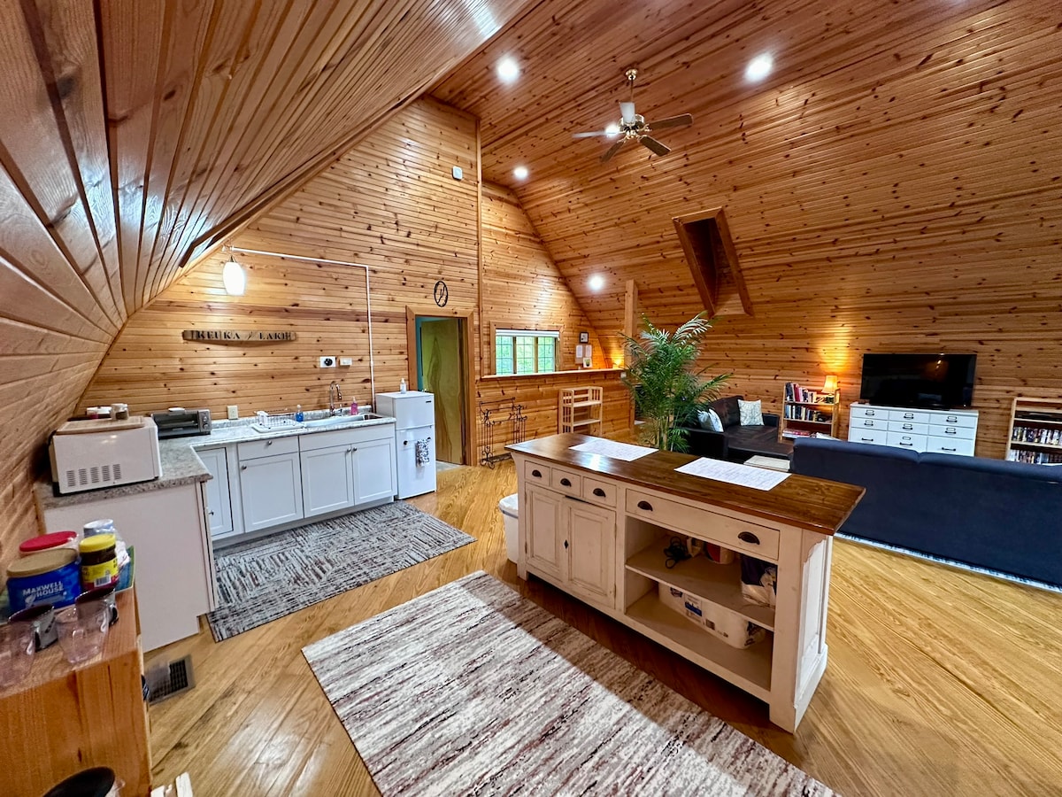 Entrarás en un apartamento estudio grande, lujoso y privado en un hermoso estilo de artes y oficios. * Ubicado en una carretera apartada junto al lago, en el lado este del lago Seneca. * Techos artesonados de diez pies. * En la Ruta del Vino del Lago Seneca. * Damos la bienvenida a los visitantes durante todo el año. Una opción maravillosa para parejas que buscan un lugar privado y tranquilo para escapar. * Muchos detalles hechos a medida. * Se pueden alojar 2 huéspedes adicionales con un sofá cama plegable (con cargo adicional).