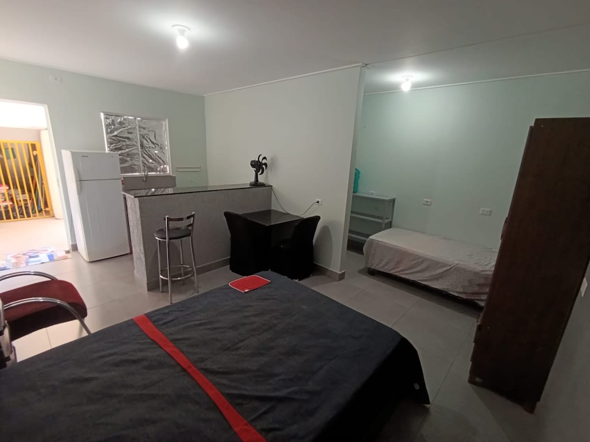 La impresionante campiña que rodea este alojamiento. Flotante completo, bien ubicado, ideal para el descanso y el tiempo libre. ✔️ 1 habitación con aire acondicionado ✔️ Sala integrada con cocina ✔️ Cocina equipada con todos los utensilios ✔️ Baño ✔️ Televisión y wifi ✔️ Área de parrilladas Acogedor, funcional y listo para darte la bienvenida con comodidad.