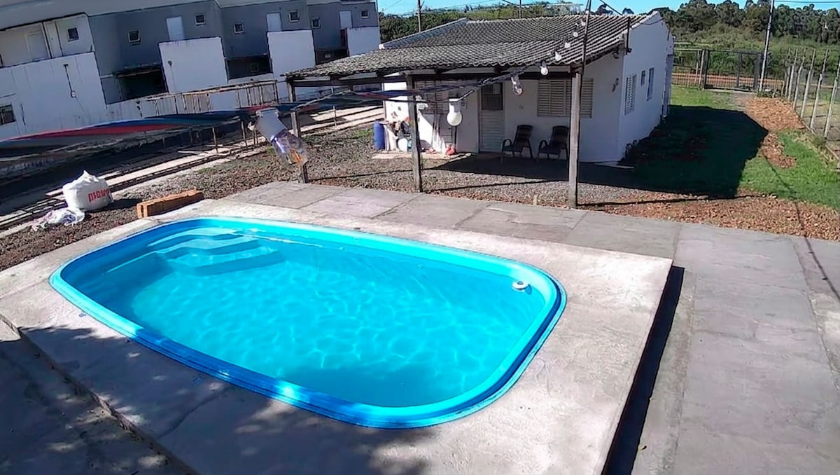 ¡Recanto Don Ciro es un hermoso chalet americano con comodidades para alojar y eventos! Tiene una estructura para hasta 7 huéspedes y hasta 35 huéspedes para eventos a pedido. Ubicación segura, diagonal a la sede, tiene un gran patio arbolado, piscina, cenador con barbacoa, mini campo de fútbol, hamaca y patio pavimentado. Hay un supermercado, farmacias y tiendas a 500 metros. El centro está a 10 minutos en auto, lo suficientemente cerca para mayor comodidad, pero lejos para garantizar la paz y la seguridad.