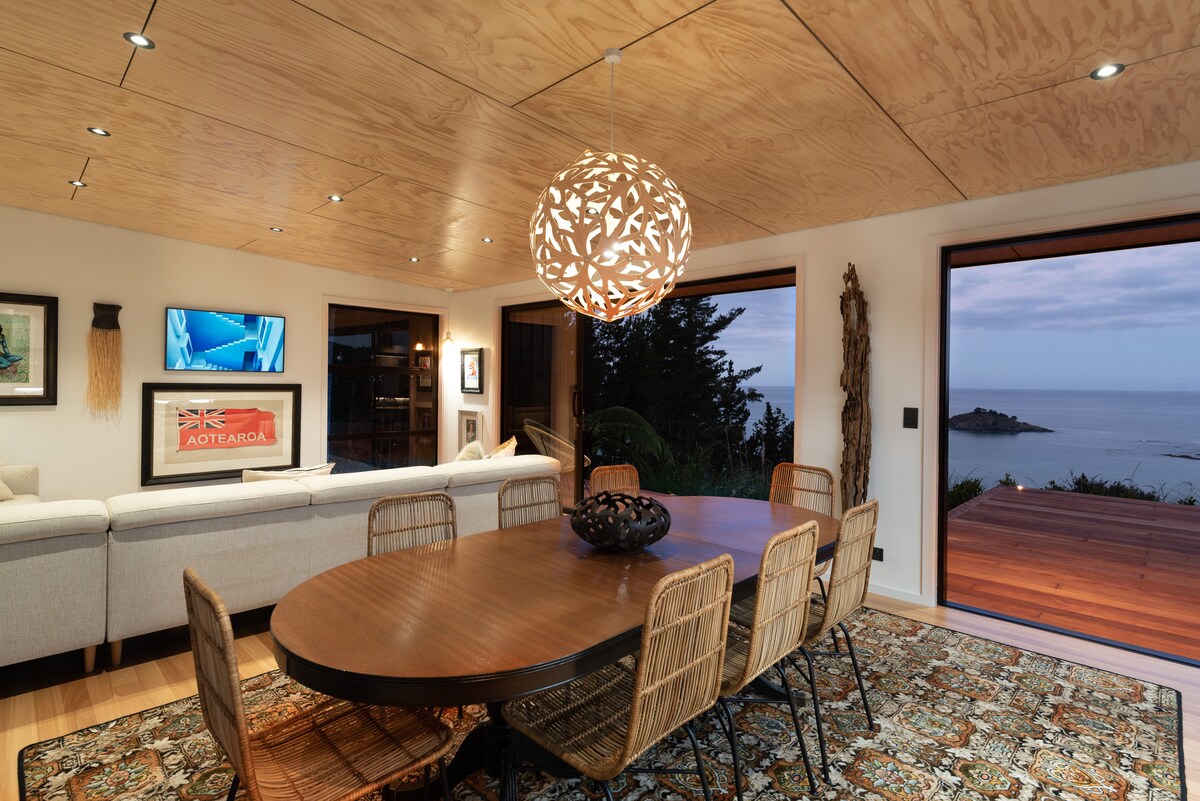 Increíbles vistas al mar Piwakawaka Lodge