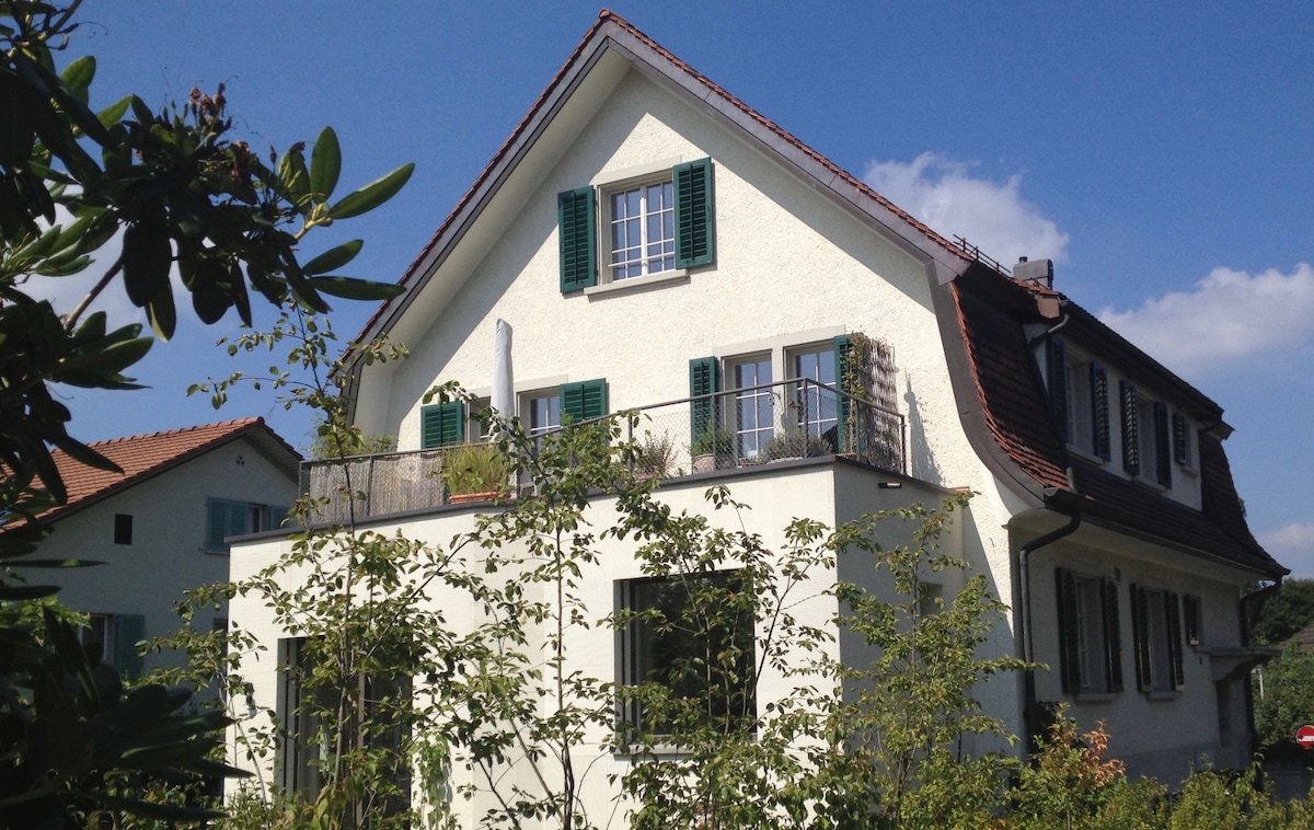 ¡Descubre lo mejor de la naturaleza cerca de Zúrich! Esta gran casa (>200 m2) ofrece tranquilidad a solo 30 minutos del centro de Zúrich en transporte público (20 minutos en coche). Disfruta de una cocina bien equipada, baños de alta gama, una acogedora sala de estar y un jardín de invierno con barbacoa y mesa de billar. Capacidad para 9 personas. Explora el jardín con vistas despejadas a los Alpes. ¡Se proporcionan bicicletas! Escápate a nuestro refugio natural, donde la comodidad de la ciudad se combina con la belleza serena. Reserva ahora y disfruta de nuestro hogar mientras estamos fuera.