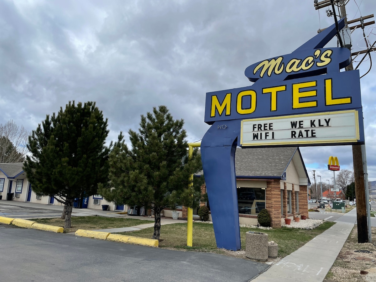 Experimenta Heber City en Mac's Motel, convenientemente ubicado en Main Street. Ideal para viajeros con poco presupuesto, nuestro motel ofrece wifi gigabit, TV de pantalla plana de 75 pulgadas con YouTube TV y entrada segura sin llave. Disfruta de alojamientos limpios y seguros con acceso a la habitación con unidad y vigilancia las 24 horas, los 7 días de la semana. Si bien lo mantenemos sencillo, nos aseguramos de que disfrutes de una estadía cómoda y asequible cerca de los mejores restaurantes y tiendas locales. Perfecto para aquellos que buscan servicios prácticos sin el precio de lujo.