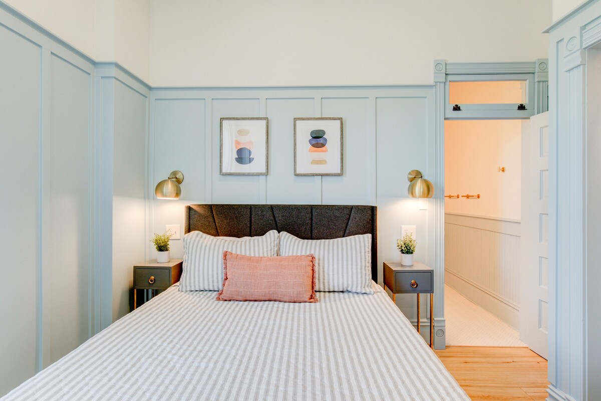 Get ready to book your next luxurious vacation in this hidden gem here in Springville! This suite is comprised of updated amenities, Mid-Century modern furniture, original historic moldings and doorknobs, and a vintage-style aesthetic designed to uplift your relaxation. A comfortable king-size bed and dedicated workspace make this suite the perfect fit! Go out and explore the beautiful nature surrounding you—just 30 minutes away are plenty of hiking trails, natural landmarks, and parks.