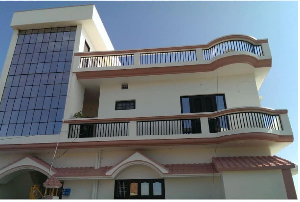 Nueva construcción, casa independiente con decoración minimalista, habitaciones bien ventiladas con balcón, aire acondicionado, baño adjunto, armario y acceso a la terraza. Sala de estar y cocina totalmente funcional para que los huéspedes la utilicen. De 3 a 4 minutos a pie de los hermosos jardines comunitarios y la zona del mercado. El anfitrión vive al lado y se puede contactar para obtener sugerencias, consejos turísticos y consejos para moverse por la ciudad. Nos encanta comer y cocinar, estamos encantados de enseñar algunos platos indios a todas las personas que deseen aprender.