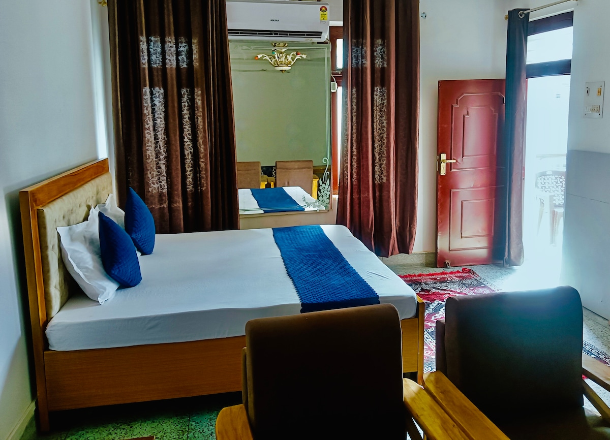 Una estancia tranquila de 1BHK a solo 1 km de Prem Mandir 🌸 Disfruta de las serenas vistas de Prem Mandir y Char Dham desde el balcón, junto con una de las mejores puestas de sol de Vrindavan. El alojamiento ofrece paz, comodidad y un espacio de meditación dedicado para una estancia llena de alma. Perfecto para que las familias, parejas y grupos se relajen y disfruten de la energía divina de Braj. 📌 Nota: Hay un vehículo de dos ruedas 🛵 disponible para alquilar en el estacionamiento de la propiedad para facilitar los viajes locales.