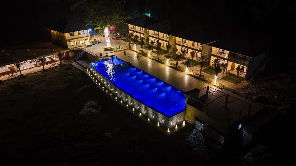 Ubicado a orillas del río Pandri, Avadale Dandeli ofrece una mezcla única de aventura y serenidad. Ubicado justo en el borde del vibrante desierto, nuestro centro vacacional ofrece una vista cautivadora y el sonido relajante del río que fluye. Aquí, rodeado de una exuberante vegetación, puedes disfrutar de un alojamiento cómodo, una deliciosa cocina local y una cálida hospitalidad.