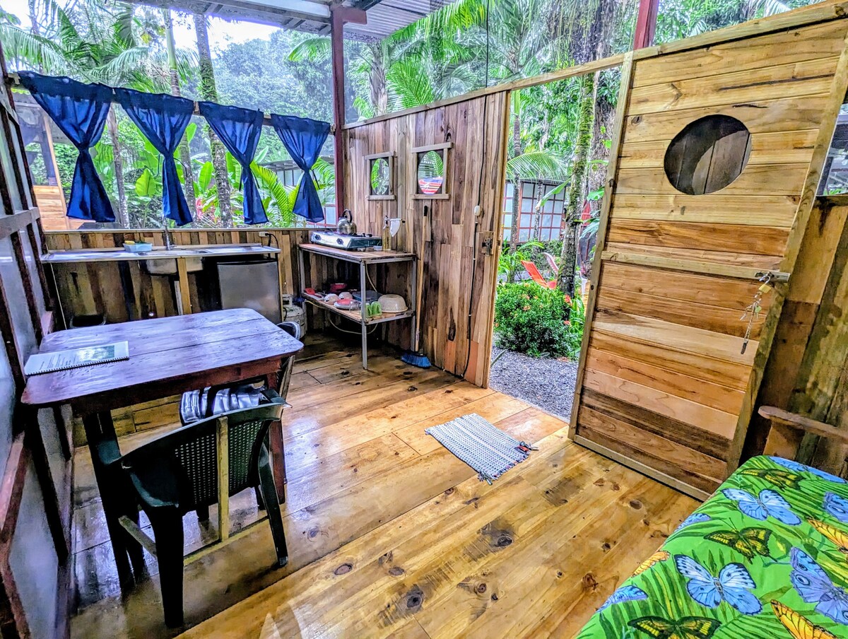 Casita Morpho está escondida en una ladera tranquila, pero cerca de todos los elementos esenciales. Ya sea que estés escapando del calor de la estación seca (tenemos aire acondicionado) o buscando refugio de la lluvia, nuestro espacio acogedor y tranquilo te tiene cubierto. Observa impresionantes puestas de sol desde la amplia cocina de arriba o trabaja con WiFi de fibra óptica rápida y redundante. A solo 1 milla de la playa y a 5 minutos a pie del minisuper, Casita Morpho ofrece el equilibrio perfecto entre privacidad y comodidad, aislada, pero cerca de todo.