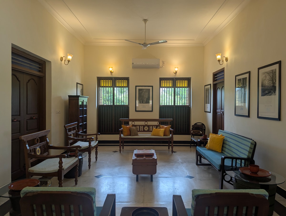 El Tamil Veedu es una casa independiente situada en el Palacio Saratha Vilas Chettinad, un hotel boutique ubicado en la original y refinada residencia familiar tamil. Puedes alquilar en Airbnb, una parte privada de esta grandiosa mansión, 2 dormitorios que se abren en su patio privado y terrazas. También puedes beneficiarte del equipo común del hotel, como la piscina del jardín, el restaurante y el famoso spa.